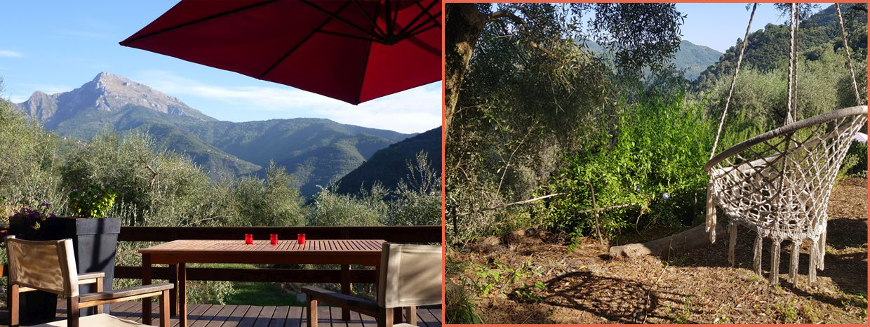 Verscholen in een eeuwenoude Italiaanse olijfboomgaard, we hebben 130 bomen, ligt ons “landgoedje’. Het ligt in de provincie Ligurië, net over de grens met Frankrijk, 16 km van de Middellandse Zee (Bloemen Riviera) en 2 km van het dorpje Pigna, waar een klein winkeltje, en restaurantjes zijn.